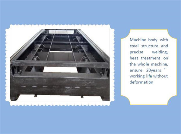 1. Badan Mesin kami dengan struktur keluli 8mm, rawatan haba 600 ℃, Kimpalan tepat, untuk memastikan penggunaan 20 tahun tanpa ubah bentuk.