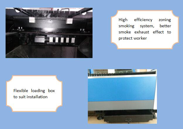 | Nama:Panduan Linear Ketepatan Sistem pemotongan maju, kuasa laser dan pergerakan servo saling saling satu sama lain, diimport gear ketepatan tinggi dan sistem pemacu rak, meja kerja berganda yang boleh ditukar, untuk memastikan kelajuan dan ketepatan pemprosesan yang lebih tinggi. |