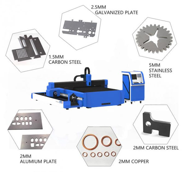 * Digunakan khas untuk memotong keluli karbon 0.5-6mm, keluli tahan karat 0.5-5mm, keluli tergalvani, lembaran keluli bersalut zink elektrolisis, keluli silikon dan lain-lain kepingan logam nipis.1000W boleh memotong aluminium 3mm dan tembaga 2mm.